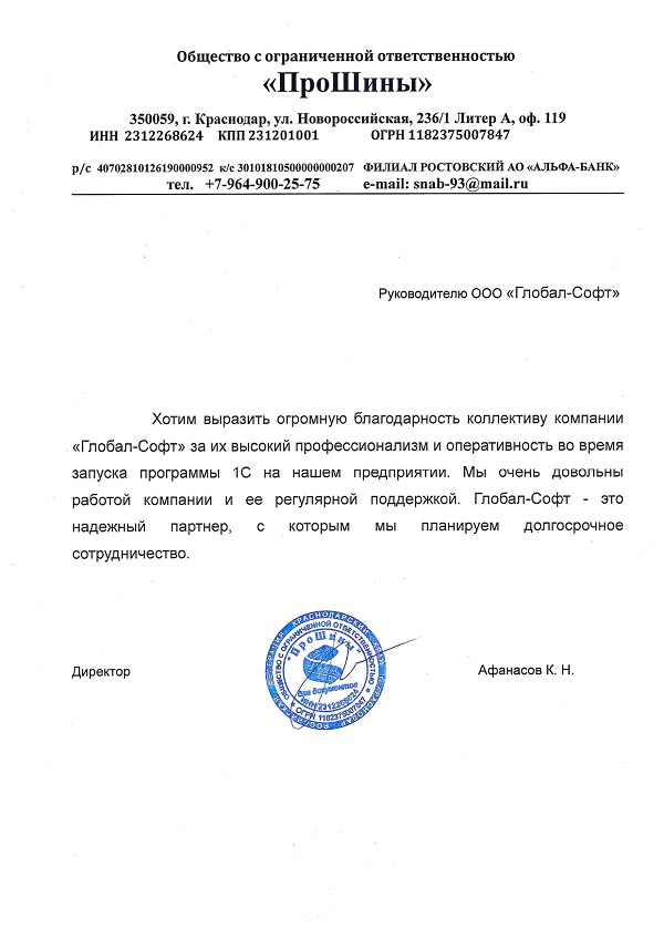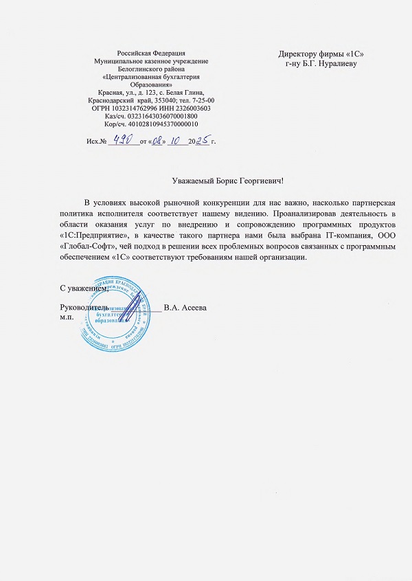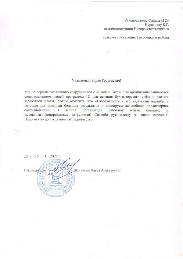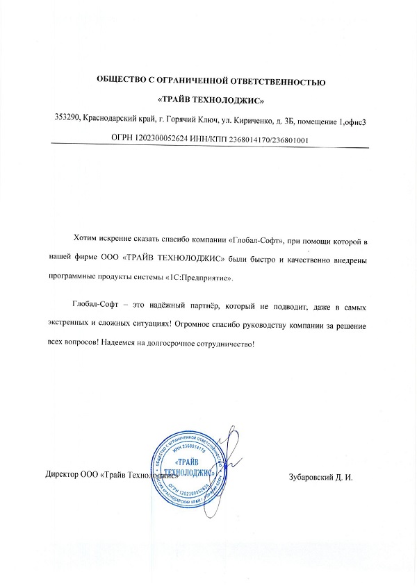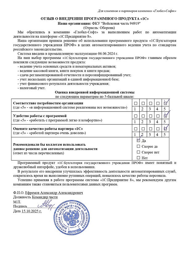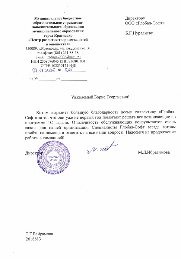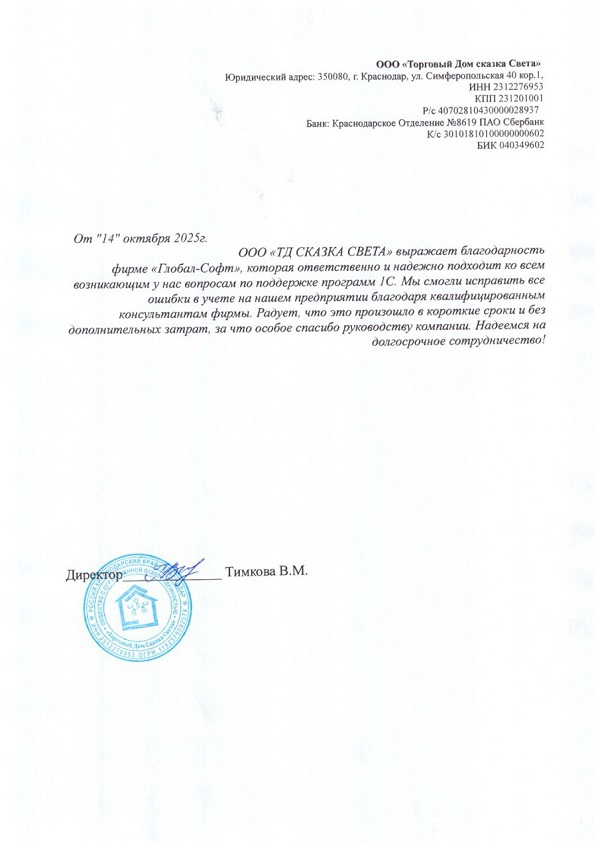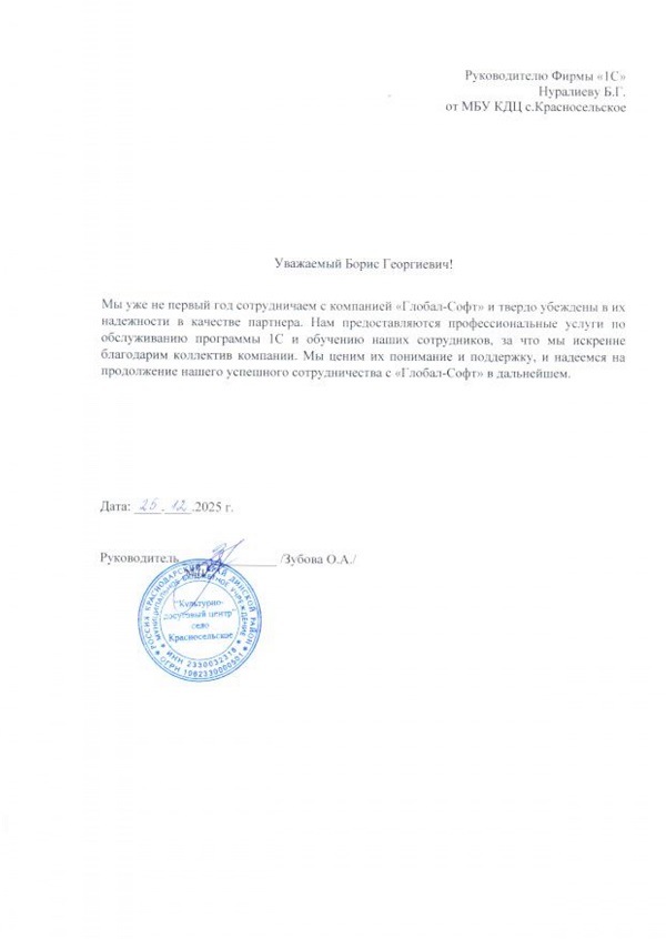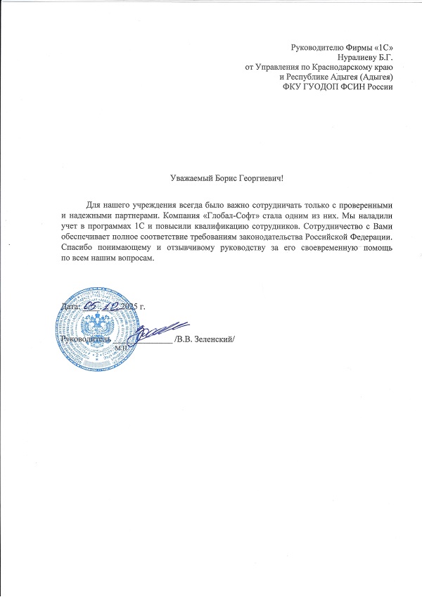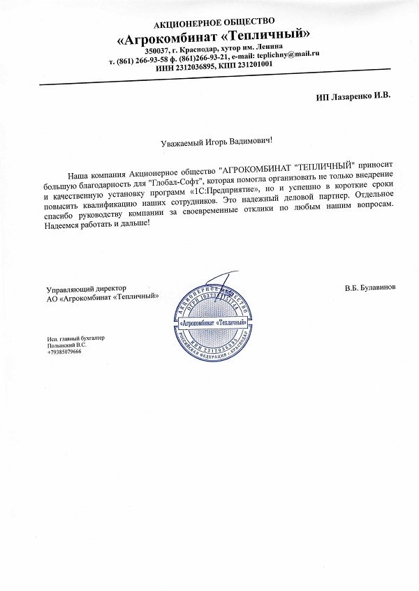 Отзывы о внедрении программ 1С специалистами "Глобал-Софт"
