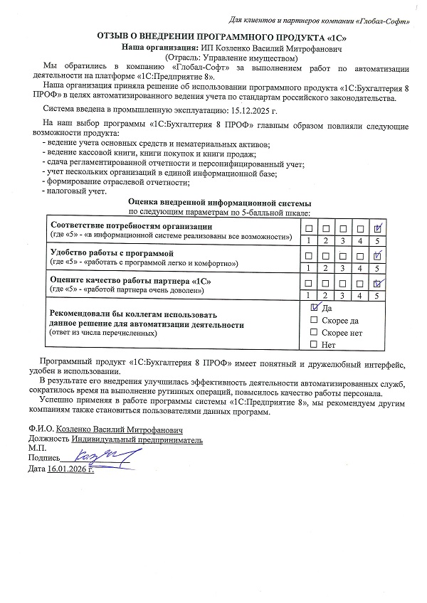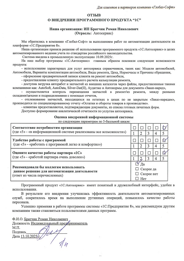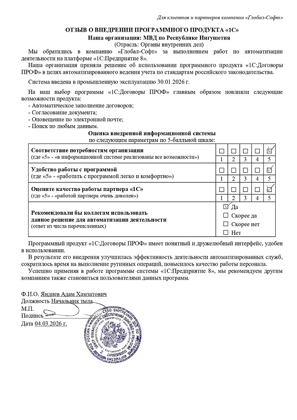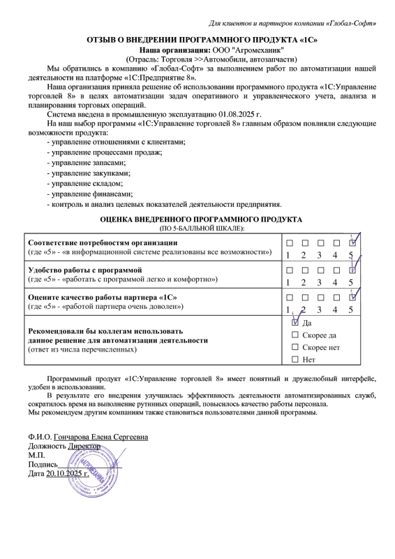 Отзывы клиентов Глобал-Софт, Рекомендации, Кейсы проектов автоматизации