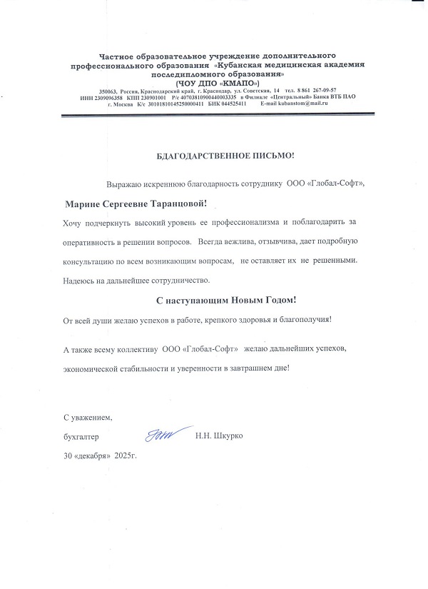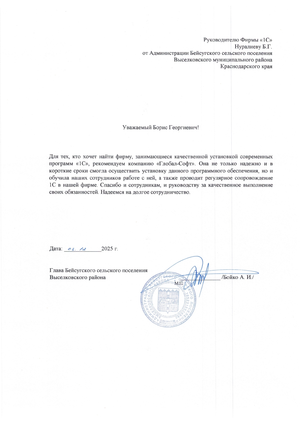 Отзывы (рекомендации) клиентов о работе специалистов компании "Глобал-Софт"