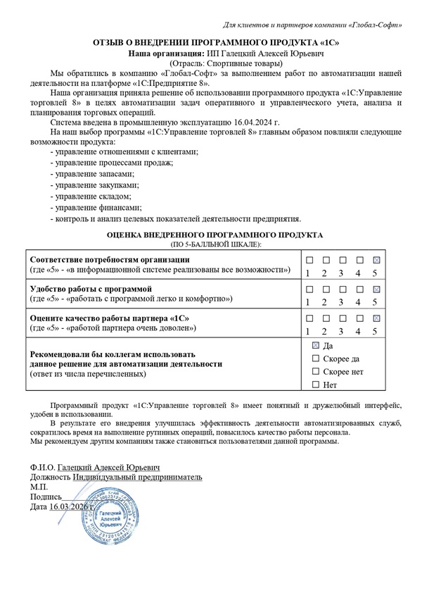 Наша организация: ИП Галецкий Алексей Юрьевич