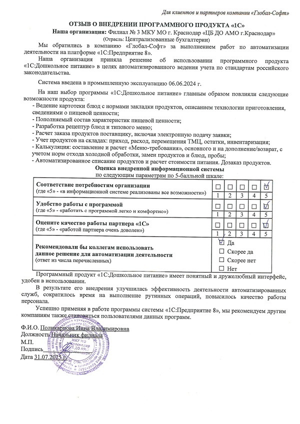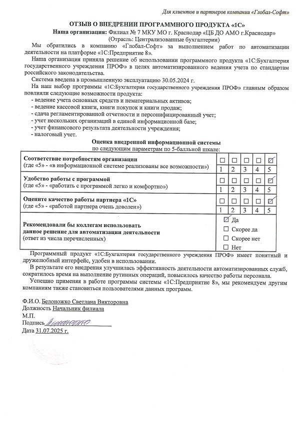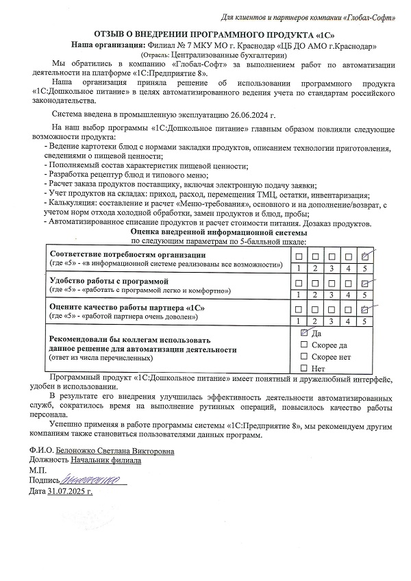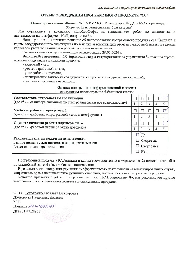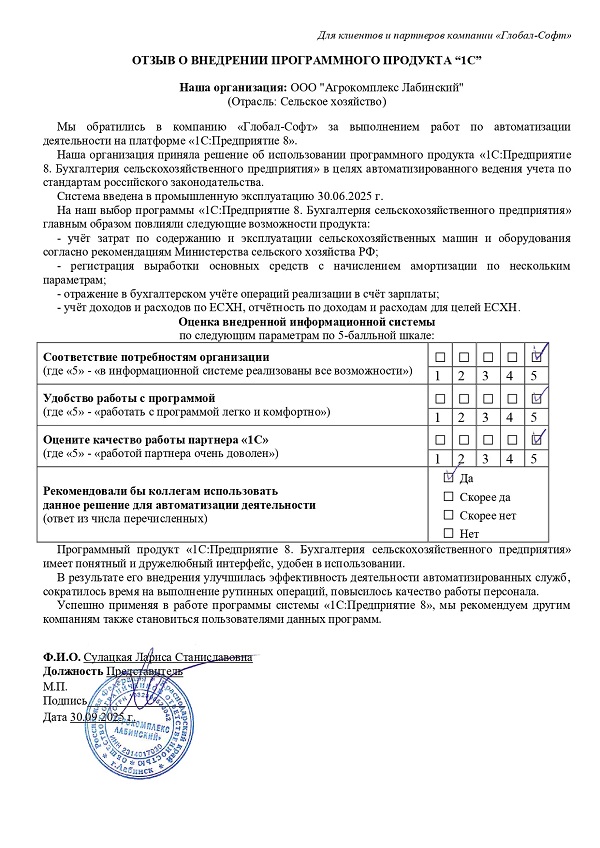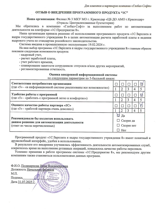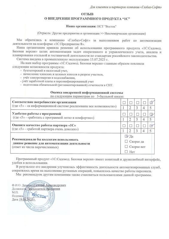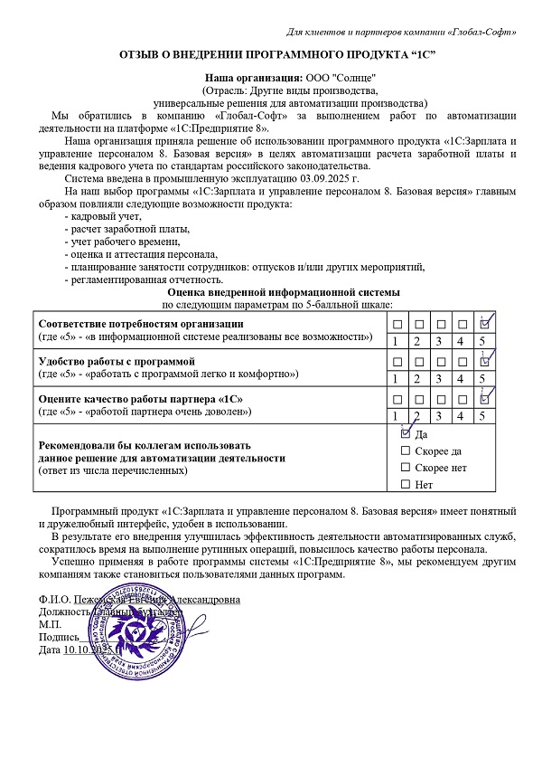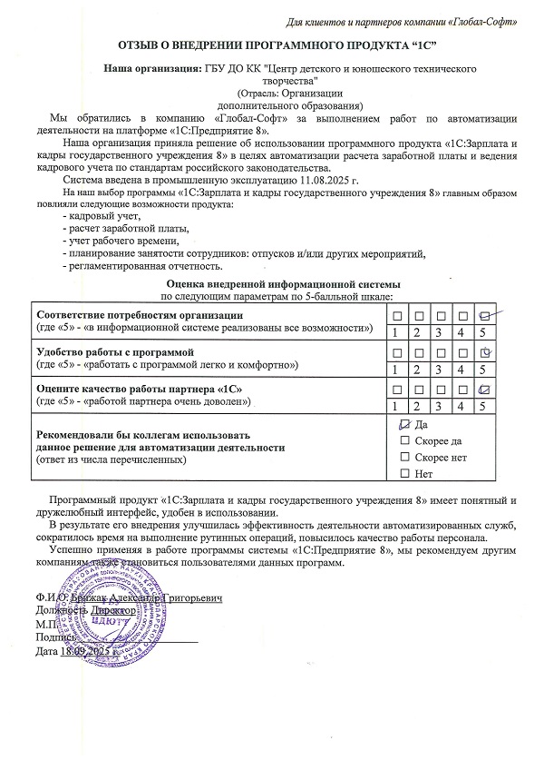 Основная задача наших сотрудников делать работу с программами 1С простой удобной и доступной. Буду рад обратной связи по качеству поставляемых товаров, оказываемых услуг, а также Вашим отзывам о работе компании.