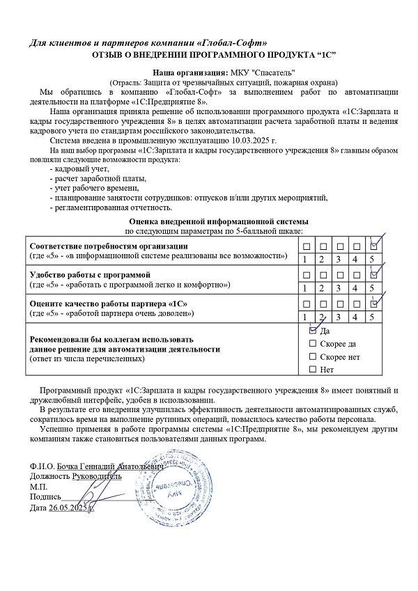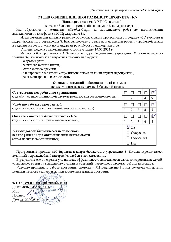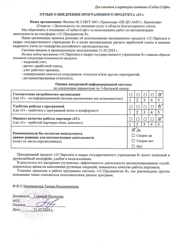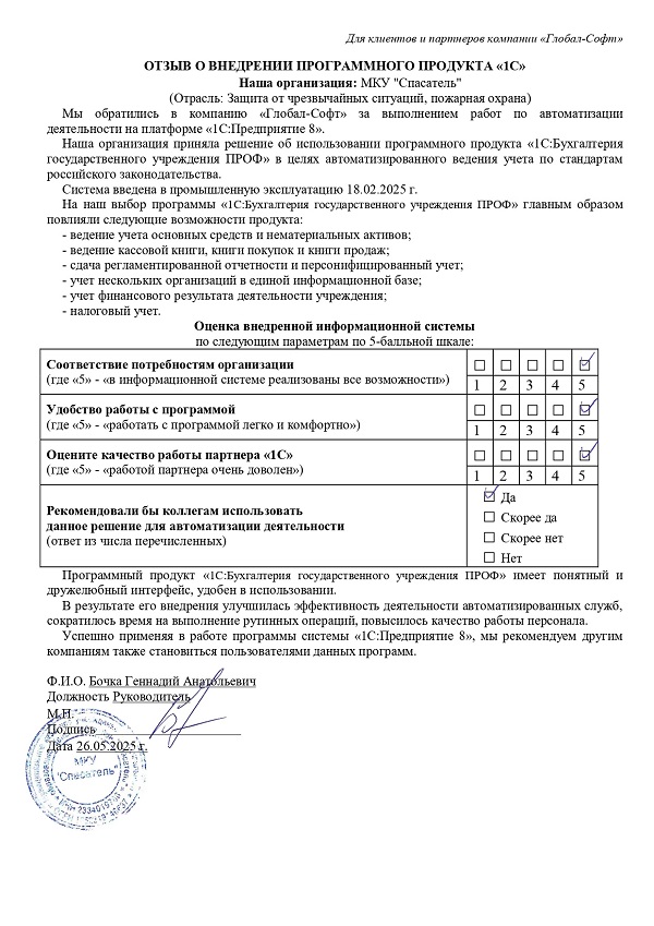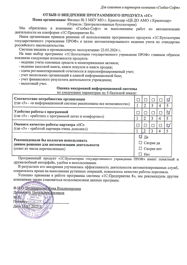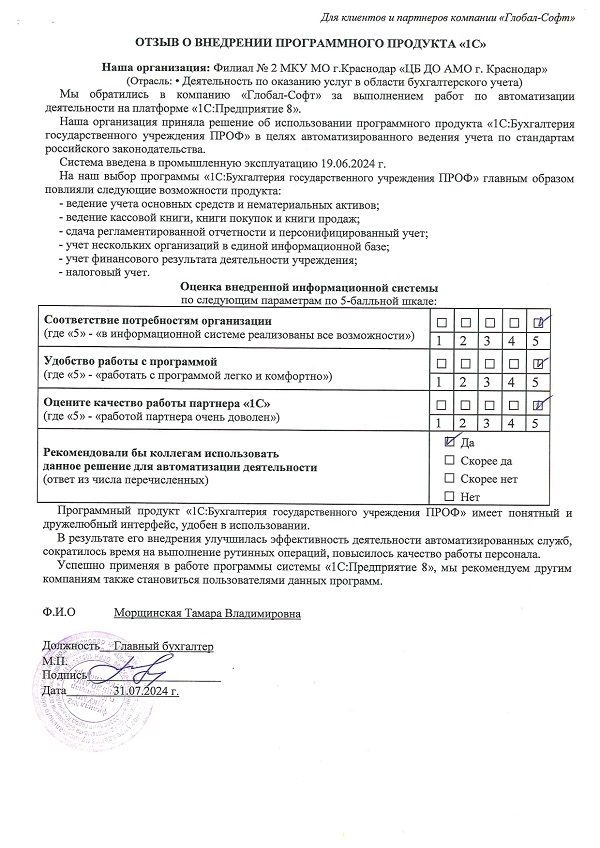 Оставьте отзыв о нашей работе