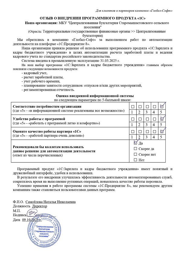 Автоматизация расчета заработной платы и ведения кадрового учета на базе ПП "1С:Зарплата и Кадры бюджетного учреждения 8" в МУНИЦИПАЛЬНОМ БЮДЖЕТНОМ УЧРЕЖДЕНИИ КУЛЬТУРЫ "МЕЖПОСЕЛЕНЧЕСКИЙ ЦЕНТР КУЛЬТУРЫ, ИСКУССТВ И НАРОДНОГО ТВОРЧЕСТВА" САКСКОГО РАЙОНА 1С:Зарплата и кадры бюджетного учреждения 8 →