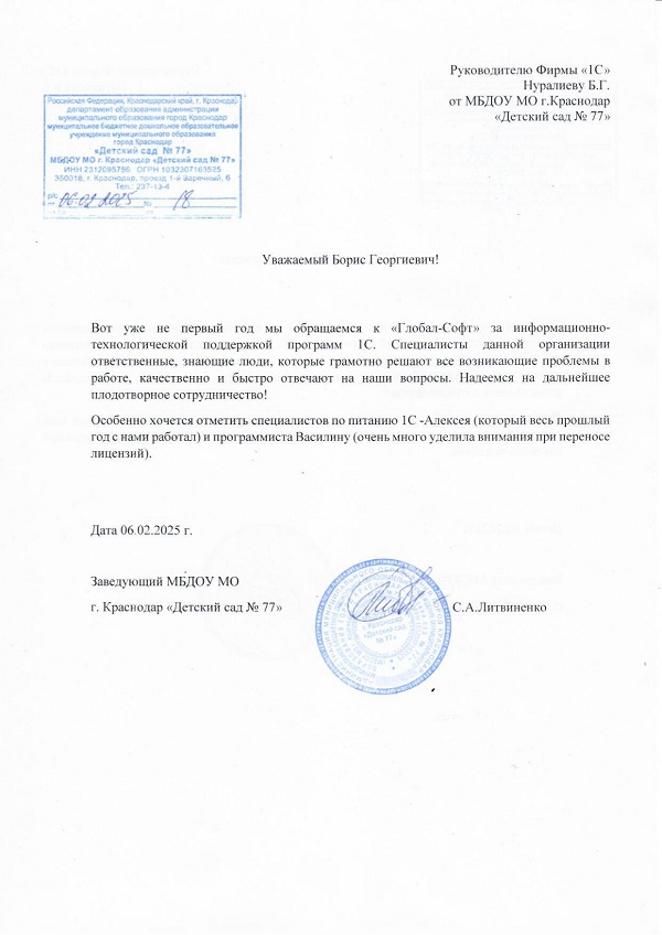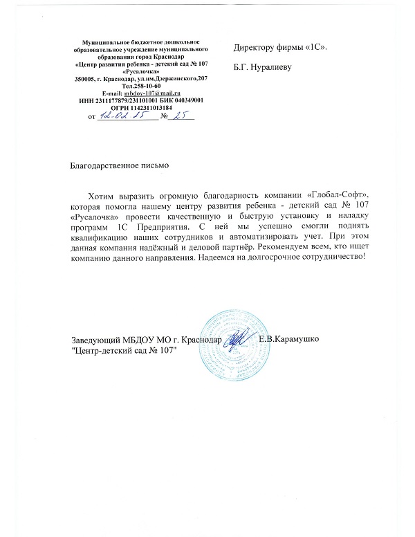 Отзывы о внедрении программ 1С специалистами "Глобал-Софт"
