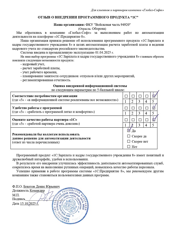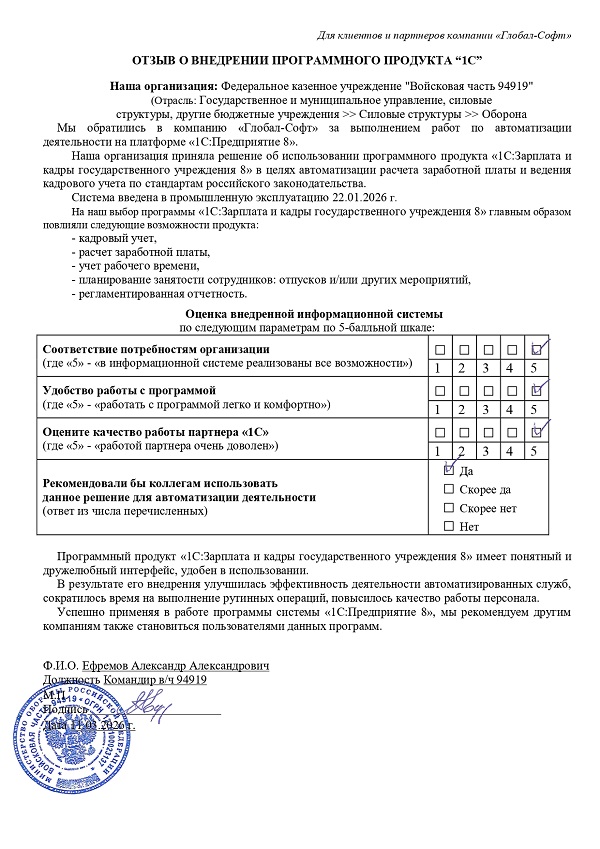 В зависимости от типа государственного учреждения в программе доступны специальные документы. Учтены особенности кадрового учета военнослужащих, работников правоохранительных органов, государственных и муниципальных служащих, медицинских работников и сотрудников образовательных учреждений.
