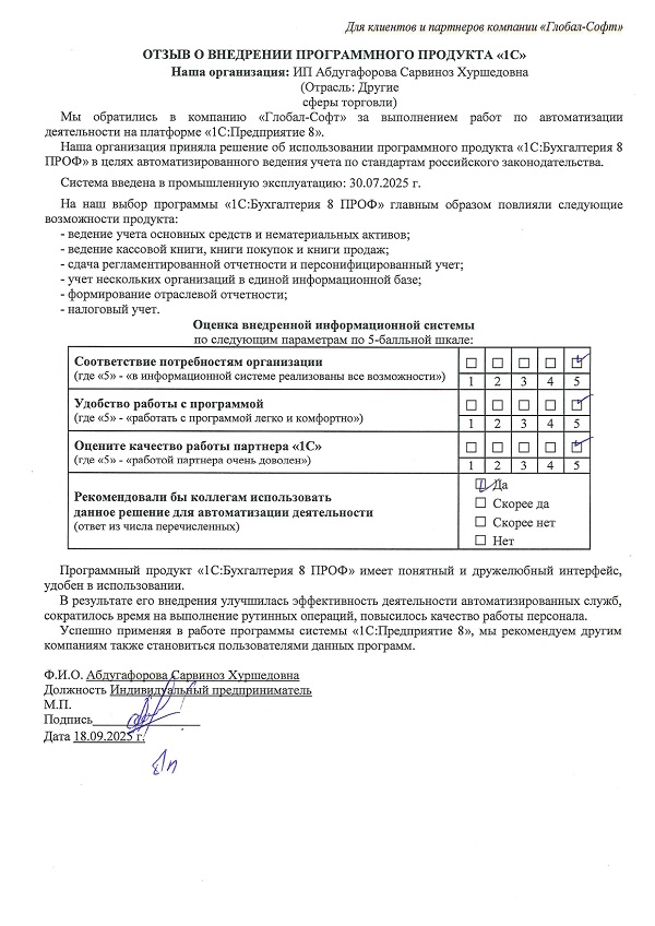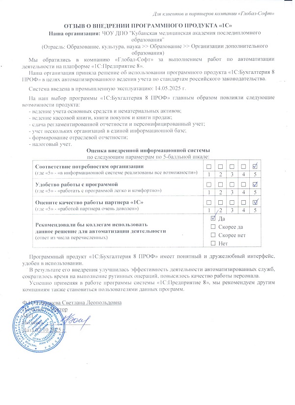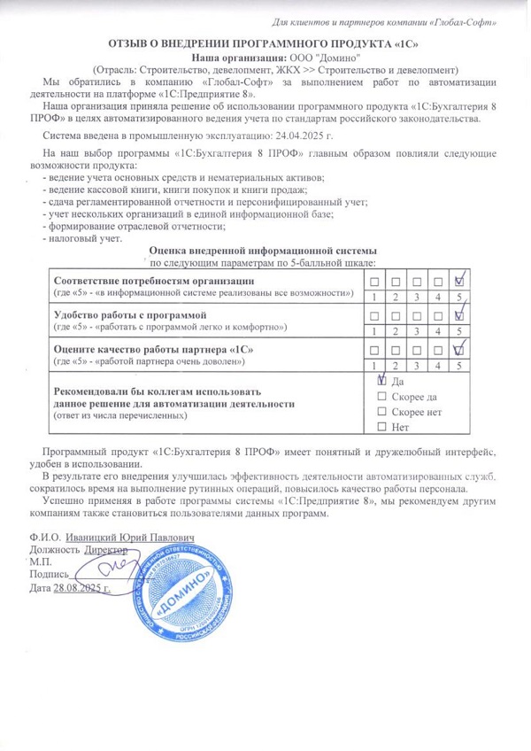 Основная задача наших сотрудников делать работу с программами 1С простой удобной и доступной. Буду рад обратной связи по качеству поставляемых товаров, оказываемых услуг, а также Вашим отзывам о работе компании.