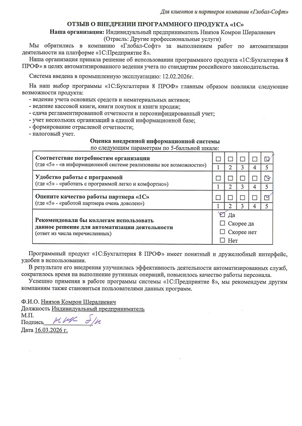 Основная задача наших сотрудников делать работу с программами 1С простой удобной и доступной. Буду рад обратной связи по качеству поставляемых товаров, оказываемых услуг, а также Вашим отзывам о работе компании.