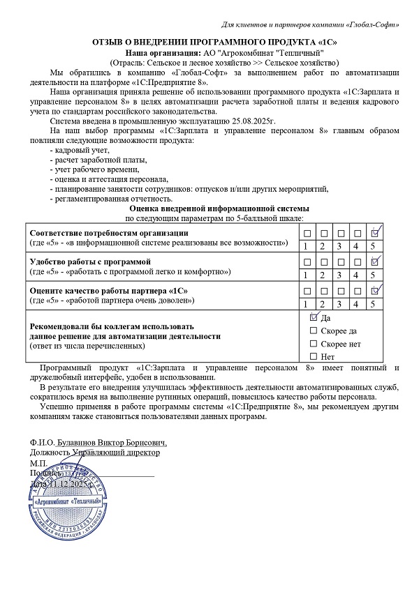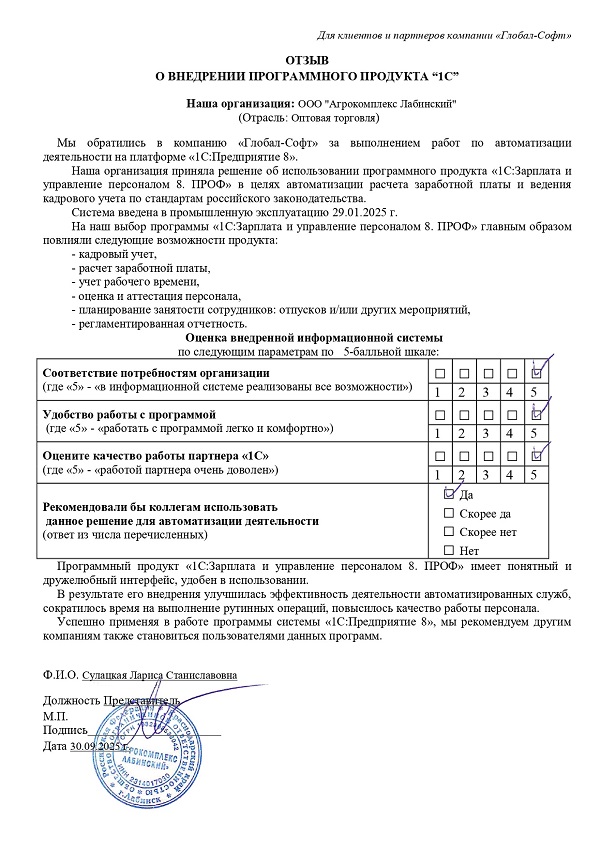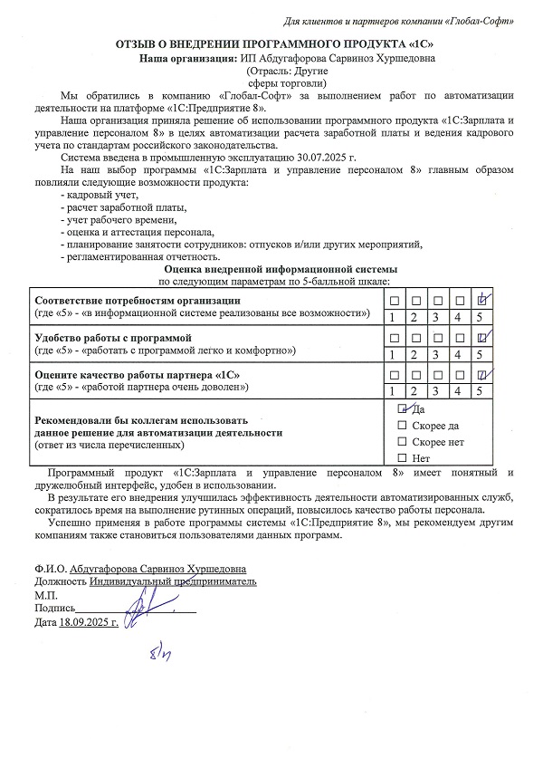 Основная задача наших сотрудников делать работу с программами 1С простой удобной и доступной. Буду рад обратной связи по качеству поставляемых товаров, оказываемых услуг, а также Вашим отзывам о работе компании.